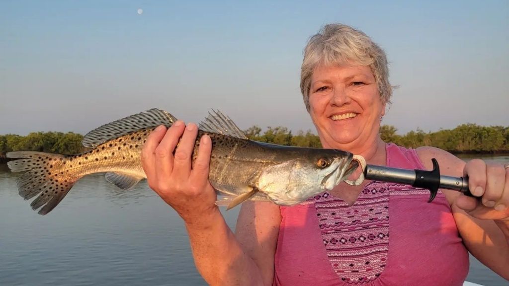 Sea trout, or specks, are one of our most reliable year-round targets. These spotted beauties typically run 15-20 inches but can top 30. You'll find them over grass flats and around deeper holes. Dawn and dusk are prime times to catch them feeding on the surface - there's nothing like seeing a trout blast a topwater lure. They're also excellent eating with delicate white meat. Live shrimp under a popping cork is deadly, but artificial lures work great too. Try a jig and grub combo or a suspending twitchbait. Work it with a slow, erratic retrieve and be ready for that telltale thump when they strike.